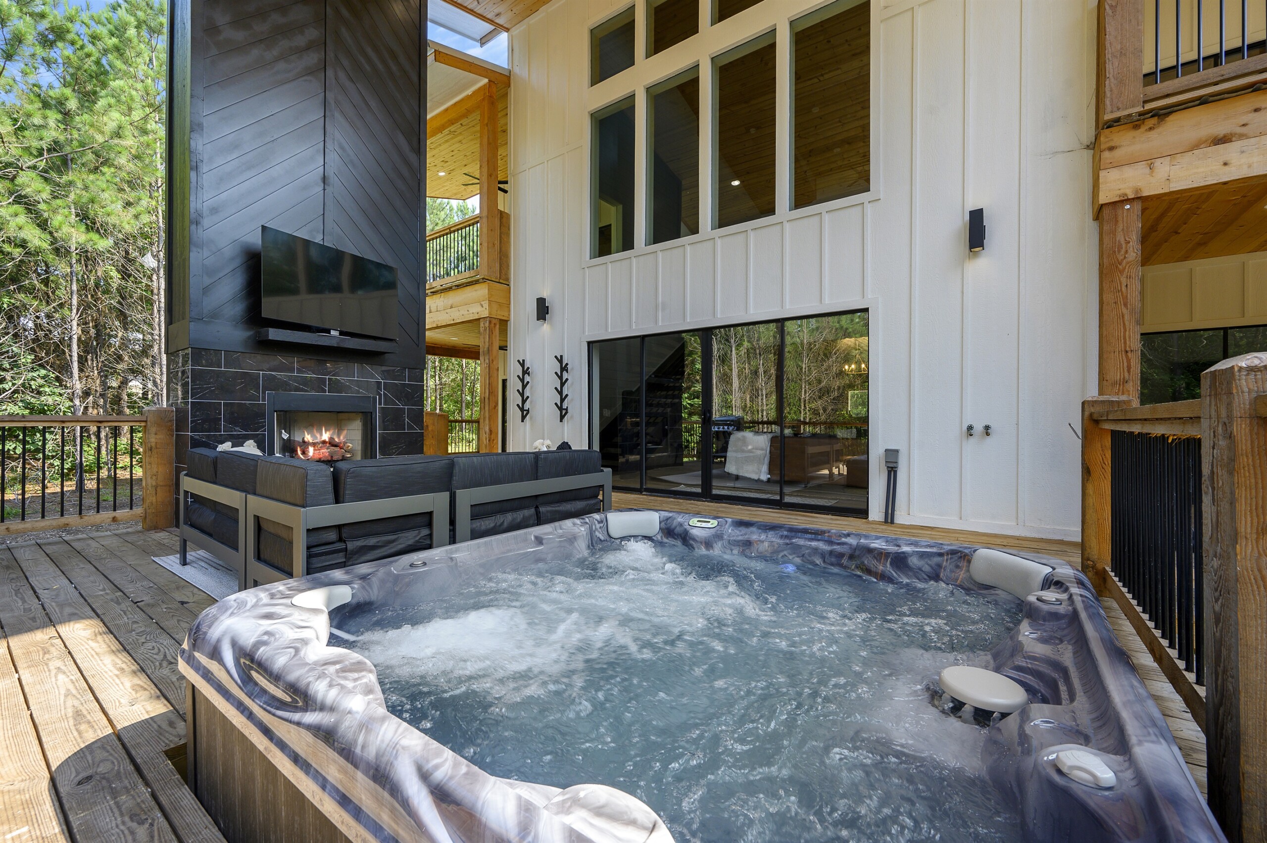 This magnificent home creates a cozy atmosphere within seconds of your arrival. With modern architecture and a spectacular view, you are sure to enjoy every second of your holiday here! Plan a BBQ night with family or friends or sit by the outdoor fire pit as you appreciate the beautiful bond that your share with your loved ones! You will not want to miss the grandeur this beautiful home has to offer!